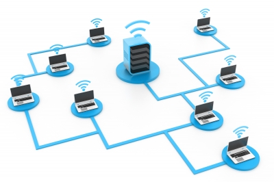 Der Aufbau eines Computernetzwerks LAN WAN WIFI Hotspot.